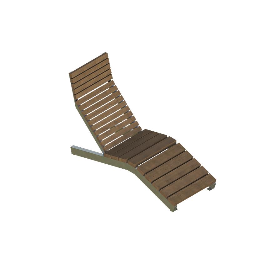 Каркас шезлонга «Граффити» выполнен из стали (полимерный цинкосодержащий грунт, горячее цинкование), сиденье может быть выполнено из бруса хвойных пород древесины, термообработанной древесины или древесно-полимерного композита (ДПК).