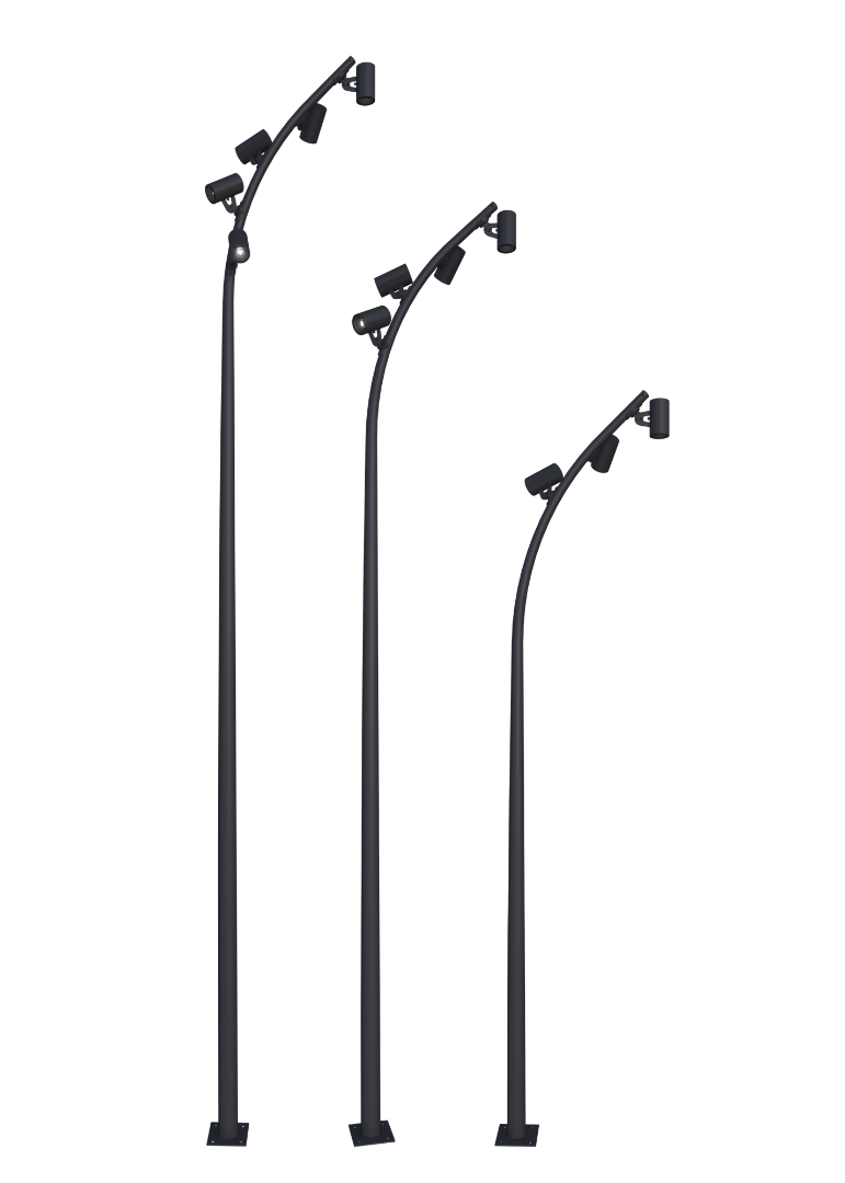 Светодиодный комплекс Фобос S 09 на стальной изогнутой опоре - новое решение в стиле хай-тек для общественных пространств, парковых и пешеходных зон. Светильник - конструктор Фобос S комплектуется светодиодными светильниками Spot-09-AF, которые расширяют его область применения от простого функционального освещения до локального акцентного освещения прилегающей территории.
